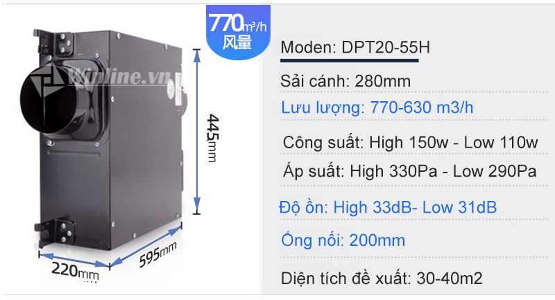 THÔNG SỐ KỸ THUẬT QUẠT CẤP KHÍ TƯƠI NEDFON DPT20-55H