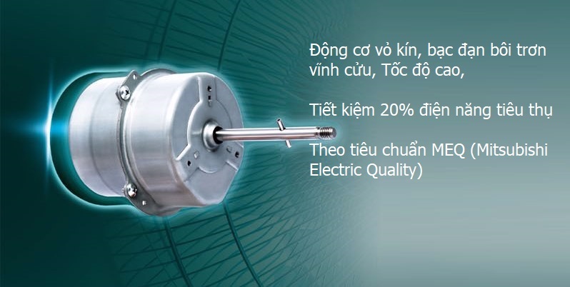 Mô tơ cao cấp với tốc độ cao, tiết kiệm năng lượng 20% và kéo dài tuổi thọ theo tiêu chuẩn MEQ ( Mitsubishi Electric Quality )