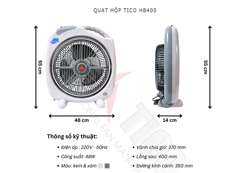 ĐẶC ĐIỂM CHÍNH QUẠT HỘP TICO HB400