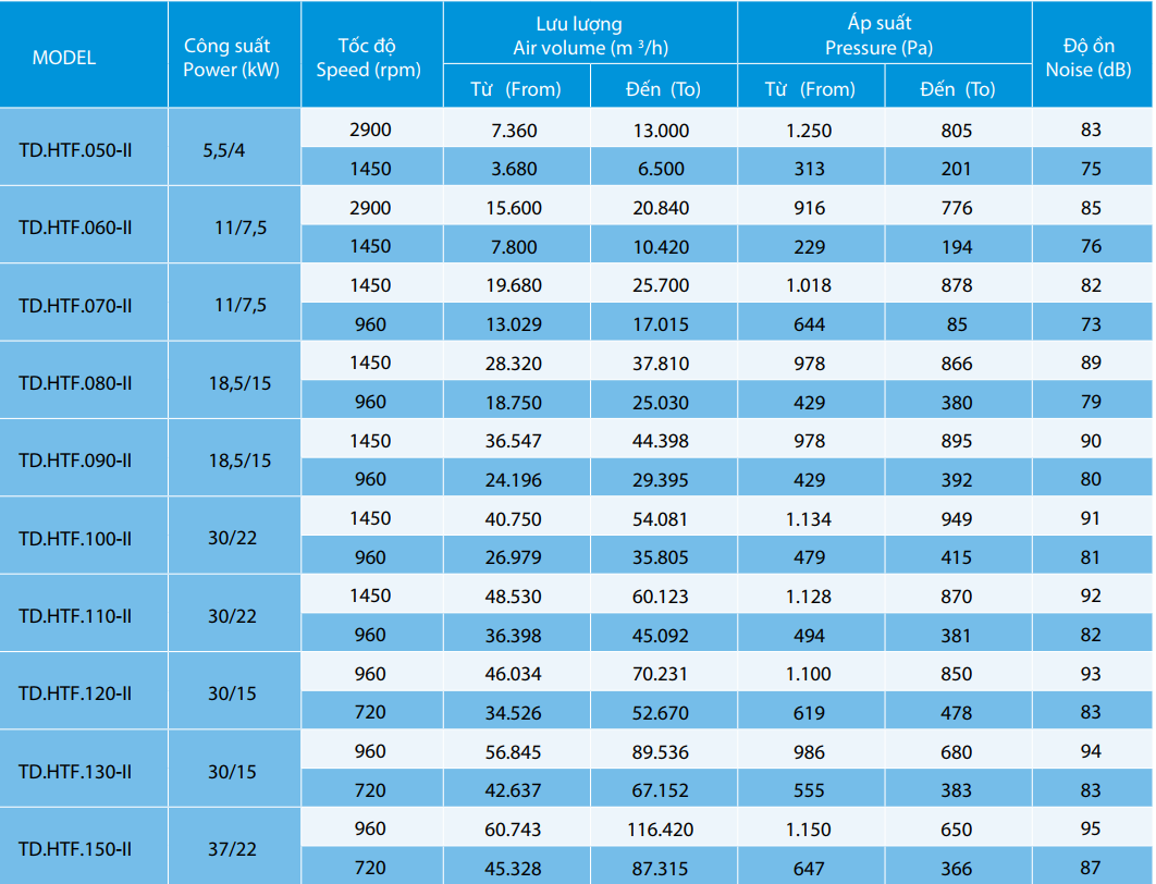| Áp suất tĩnh | 1.000 – 600 Pa |