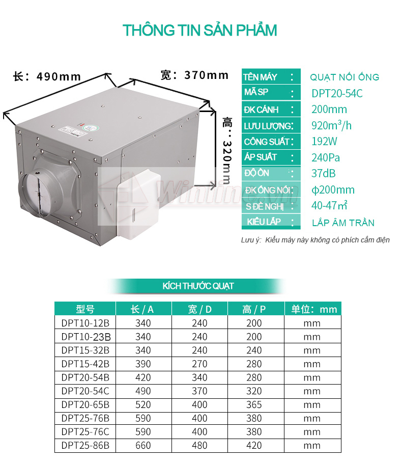 Quạt hút âm trần nối ống Nedfon DPT20-54C là quạt nối ống gió dạng hộp. Sản phẩm được sử dụng nhiều trong các công trình thông gió điều hòa dạng âm trần, quạt âm trần nối ống DPT có độ ồn thấp (Low-Noise Type Dust Ventilating Fan) của thương hiệu Nedfon.