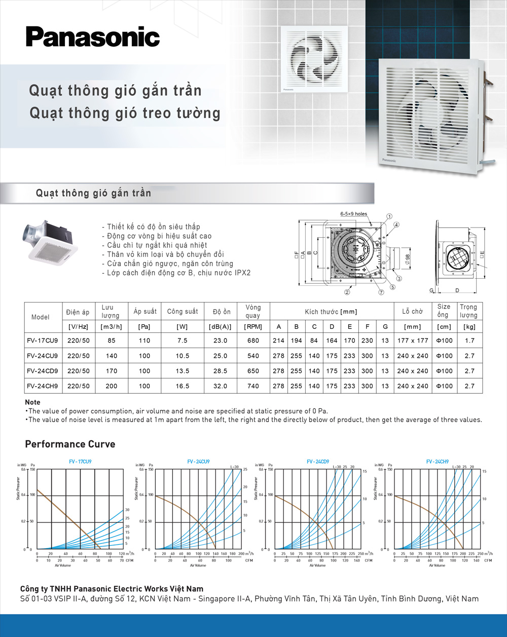 | Mã Sản Phẩm | Quạt hút âm trần Panasonic FV-24CU9 |