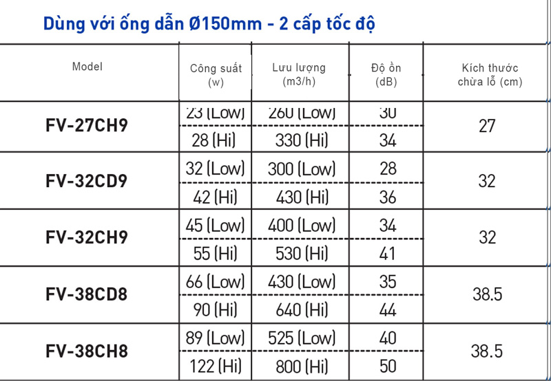 | Tên sản phẩm | Quạt hút âm trần Panasonic FV-32CH9 |