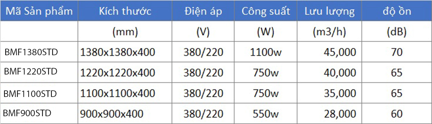 | Tên sản phẩm | Quạt hút công nghiệp BMF |