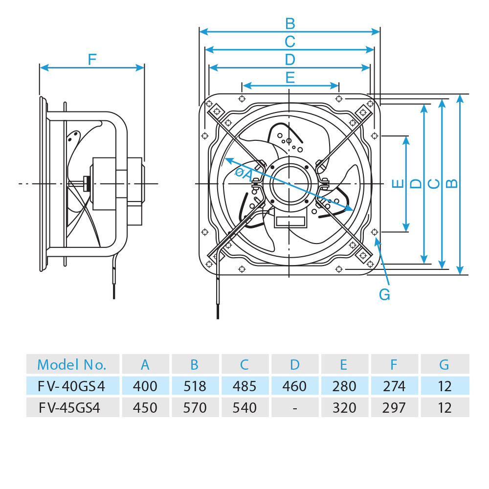 Thông số kỹ thuật Quạt hút công nghiệp Panasonic FV-40GS4