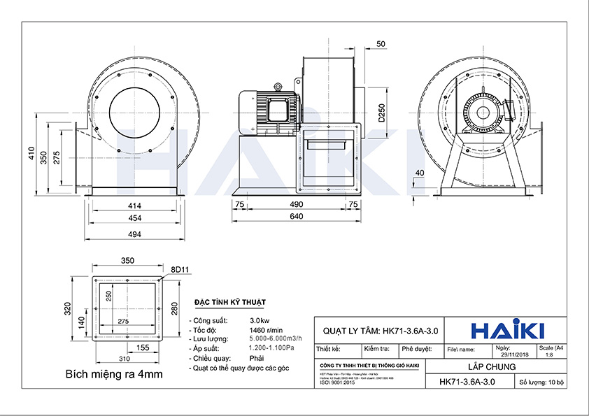 Tải bản vẽ lắp đặt Quạt ly tâm hút bếp HAIKI HK71-3.6A-3.0