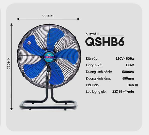 | Tên sản phẩm | Quạt sàn điện cơ 91 QS HB6 |