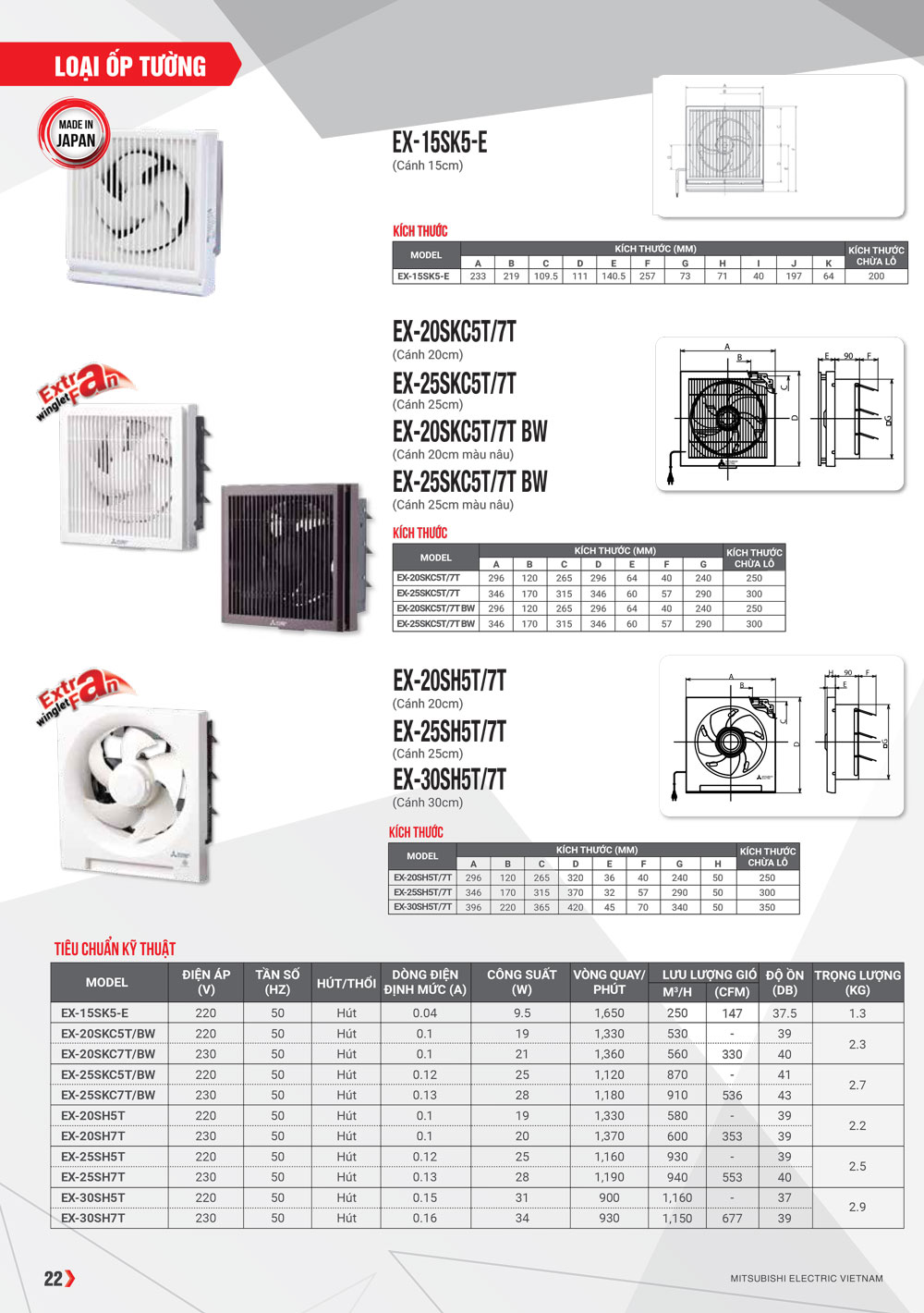 Kích thước lắp đặt Quạt thông gió Mitsubishi EX-25SKC5T