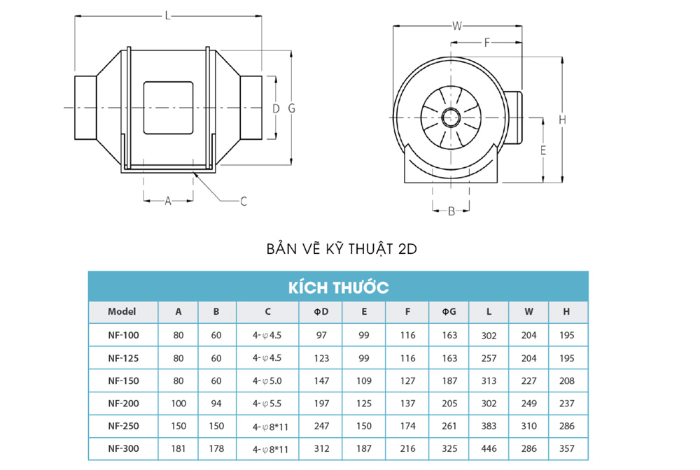 Đặc điểm chính của Quạt thông gió nối ống Kyungjin NF-125