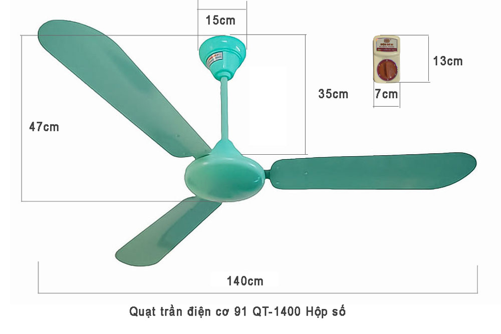 Quạt trần điện cơ 91 QT-1400N cánh nhôm với hộp số 5 tốc độ, quạt được trang bị hệ thống bảo vệ động cơ quạt và đảm bảo các tiêu chí an toàn về điện, moto quạt được trang bị thêm cầu chì chống cháy tự ngắt điện khi có sự cố, an toàn cho người sử dụng.