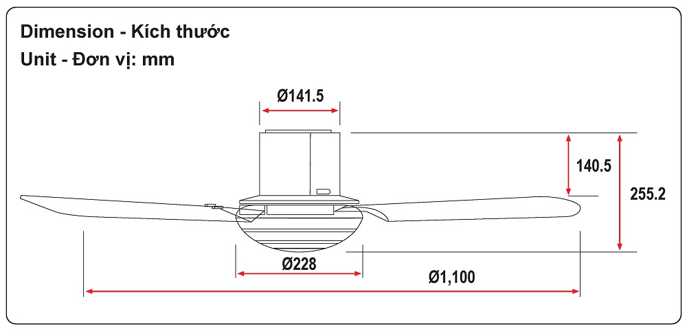 Rất phù hợp với phòng nhỏ, nơi không gian hẹp, sải cánh 1.1m màu bạc trang nhã, tiết kiệm không gian sử dụng, tăng độ an toàn cho trẻ nhỏ và tiện lợi khi có điều khiển từ xa.