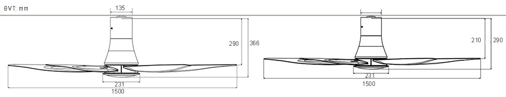 | Chiều cao quạt | Ty ngắn: 29cm/ Ty dài: 36.6cm |