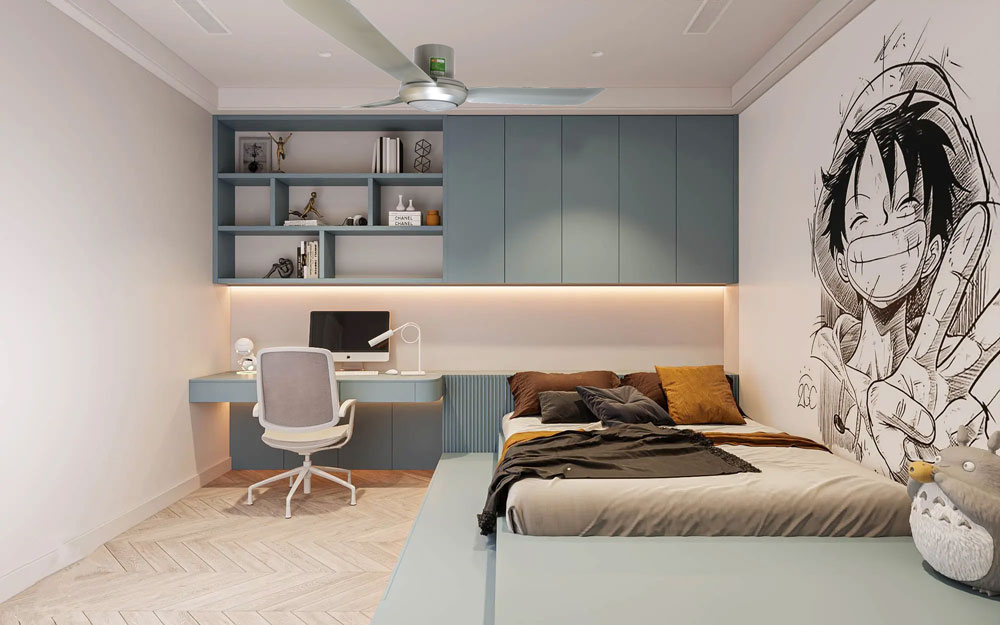Thường được sử dụng trong các không gian phòng nhỏ hẹp, với ti ngắn 14cm và sái cánh 120cm. so với các quạt treo tường, quạt cây quạt bàn thì cách dùng quạt trần nhỏ giúp người dùng có thêm không gian sử dụng và an toàn cho trẻ nhỏ. rất tiện lợi khi quạt có trang trị điều khiển từ xa.