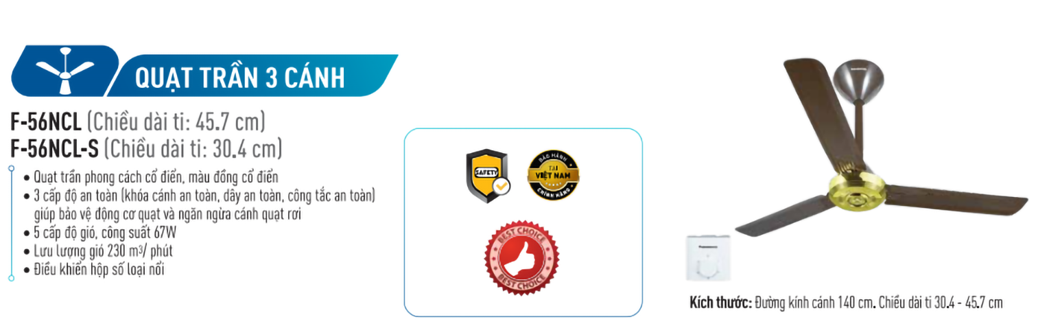 | Tên sản phẩm | Quạt trần Panasonic F-56NCL |