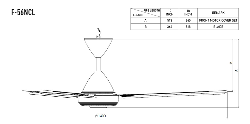 BẢN VẼ KÍCH THƯỚC LẮP ĐẶT: Quạt trần Panasonic F-56NCL