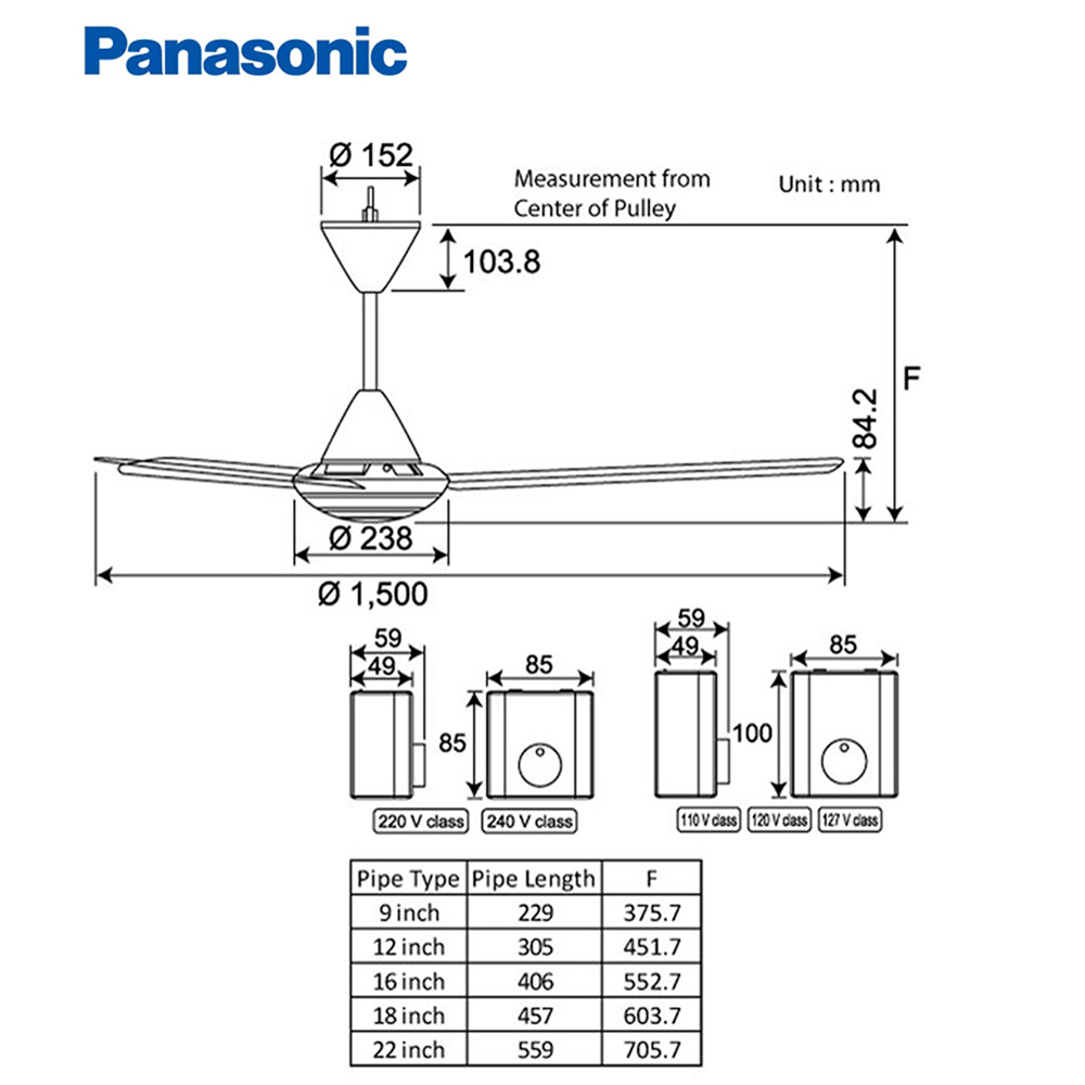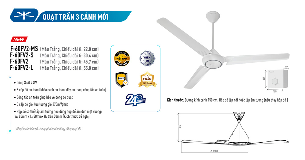 | Tên sản phẩm | Quạt trần Panasonic F-60FV2 3 cánh |