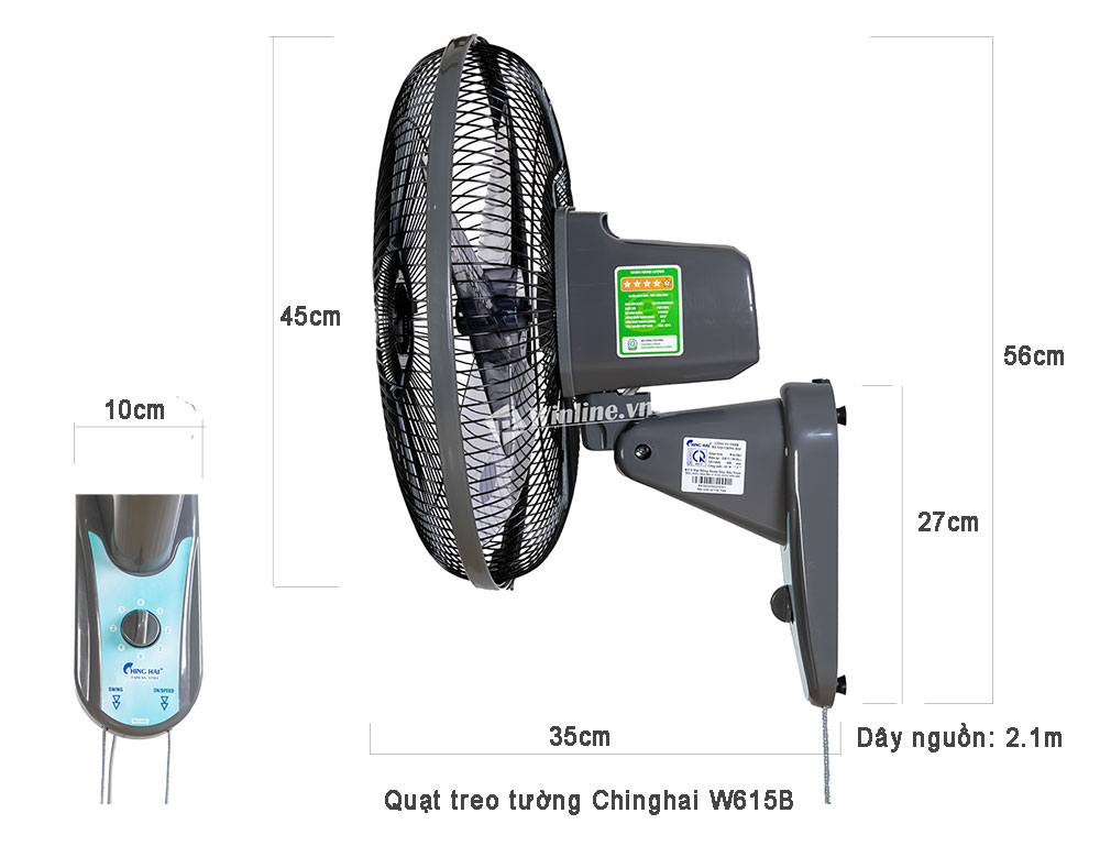 | Tên | Quạt treo tường chinghai W-615B3 |