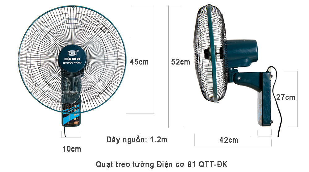 | Tên sản phẩm | Quạt treo tường điện cơ 91 QTT-ĐK |