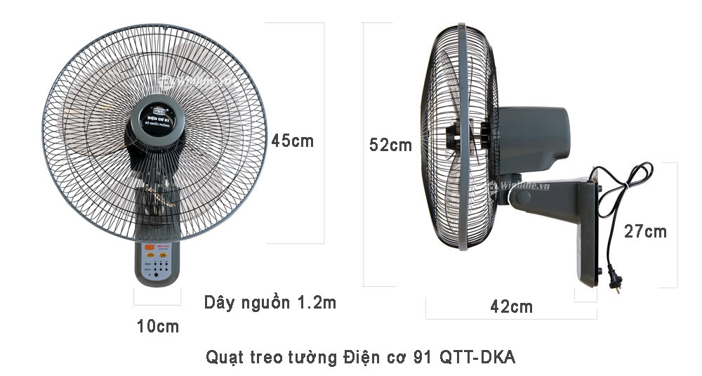 | Tên sản phẩm | Quạt treo tường Điện cơ 91 QTT-DKA| Điều khiển từ xa |