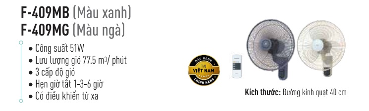 | Tên sản phẩm | Quạt treo tường Panasonic F409-MG |