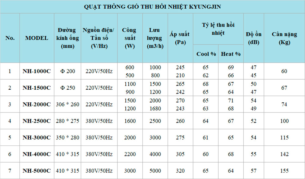 Thiết bị thông gió hồi nhiệt KyungJin NH-2500C, 2500m3/h
